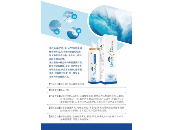 產(chǎn)品說明:【結(jié)構(gòu)及組成】海水鼻腔清洗波由生理性海水溶波和儲液瓶組成,生理性海水溶波由海鹽和純化水混合制成。【產(chǎn)品性能】應(yīng)密封完好,無