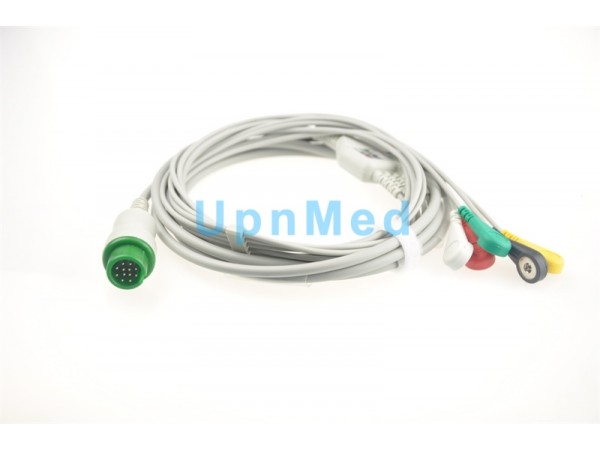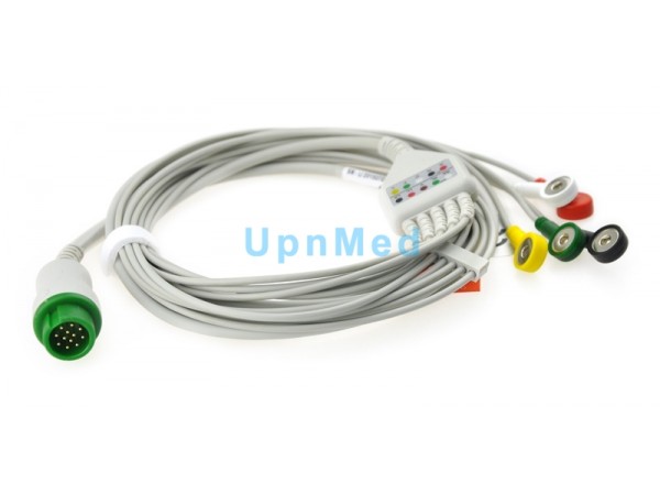 產(chǎn)品說明:寶萊特BLT原裝一體五導(dǎo)美標(biāo)AHA(棕V、白RA、紅LL、黑LA、青RL)按扣式心電線 M6/M8000/9000/352A/M69 (老款非加密)監(jiān)護儀綠色圓