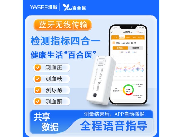 產品說明:1.3分鐘輕松測4項:測血壓 | 測血糖 | 測尿酸 | 測血酮2.無屏式設計,迷你尺寸,方便收納或外出攜帶3.藍牙傳輸,APP數據即時同步