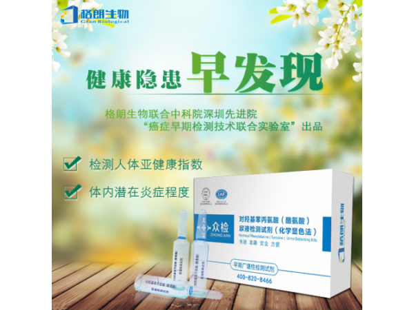 產(chǎn)品說明:“眾檢”是什么?答、是由格朗生物自主研發(fā)生產(chǎn)的高科技產(chǎn)品,它的化學(xué)名叫做對羥基苯丙氨酸(酪氨酸)尿液檢測試劑;主要用于檢