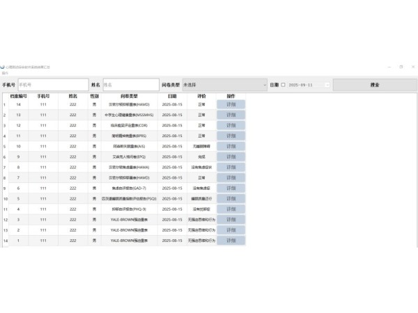 產(chǎn)品說(shuō)明:系統(tǒng)通過(guò)人機(jī)交互的方式,運(yùn)用標(biāo)準(zhǔn)化的測(cè)量工具,將心理測(cè)評(píng)結(jié)果以量化的形式展現(xiàn)出來(lái),最終實(shí)現(xiàn)對(duì)個(gè)體心理健康水平的衡量。相比