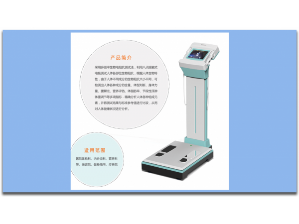 產(chǎn)品說明:人體成分分析儀是一種可以幫助人們了解自己身體組成的設(shè)備。采用多頻率生物電阻抗測試法,利用八點接觸式電極測試人體各部位生物