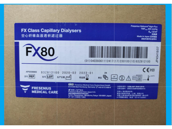 產(chǎn)品說(shuō)明:費(fèi)森尤斯透析器FX80 FX60 DIASAFE PLUS血液透析(Dialysis)是利用半透膜的原理,將的血液與透析液同時(shí)引進(jìn)透析器,兩者在透析膜的兩