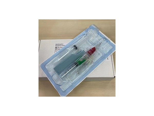 產(chǎn)品說(shuō)明:適用范圍:供環(huán)甲膜穿刺,建立人工氣道,緩解上呼吸道阻塞用。結(jié)構(gòu)及組成:環(huán)甲膜穿刺套裝由推注器、環(huán)甲膜穿刺針、連接管組成。