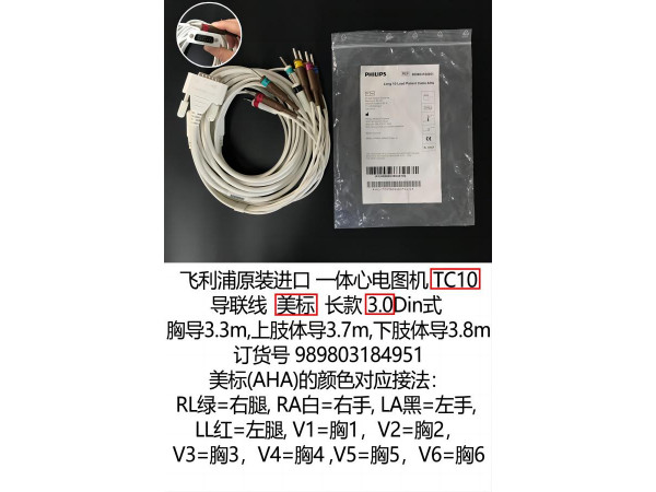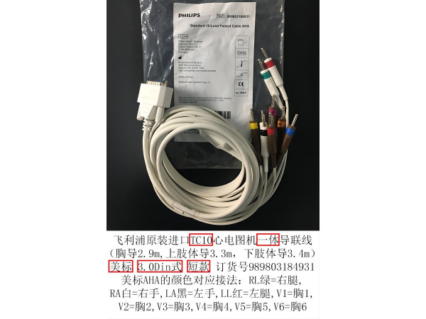 產(chǎn)品說明:飛利浦原裝進(jìn)口TC10心電圖機(jī)一體導(dǎo)聯(lián)線含分線 短款(胸導(dǎo)2.9m,上肢體導(dǎo)3.3m,下肢體導(dǎo)3.4m)3.0Din式 美標(biāo) 訂貨號(hào)989803184931