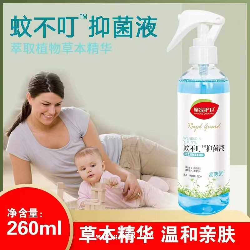 產(chǎn)品說明:產(chǎn)品名稱蚊不叮抑菌液漢語拼音wenbudingyijunye品牌名稱皇家護(hù)衛(wèi)注冊商標(biāo)皇家護(hù)衛(wèi)產(chǎn)品用途請見說明書主要成分艾草提取液、苦參提