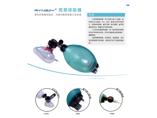 產(chǎn)品說明:一、用途:適用于所有年齡段的便攜式的人工復(fù)蘇器的專用要求,用于為呼吸不充分人員提供肺通氣。對于嬰兒、兒童用人工復(fù)蘇器則根