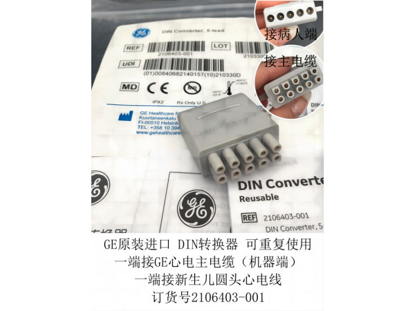 產(chǎn)品說明:GE原裝進(jìn)口 DIN轉(zhuǎn)換器 可重復(fù)使用 一端接GE心電主電纜(機(jī)器端) 一端接新生兒圓頭心電線 訂貨號2106403-001GE監(jiān)護(hù)儀型號:B20/3