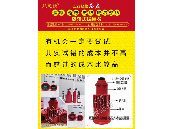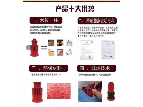 產(chǎn)品說明:甄通暢艾灸砭石拔罐器----以熏蒸給藥,艾灸理療,砭石熱療,負(fù)壓拔罐,壓差治療五位一體的新型多功能拔罐,減少不能同時(shí)多方面治