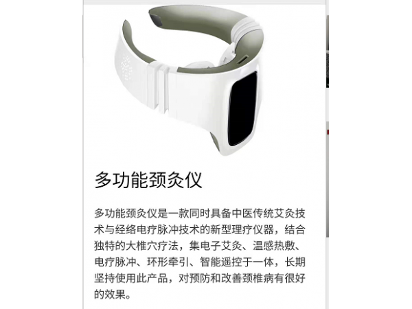 產(chǎn)品說明:產(chǎn)品介紹康檸多功能頸灸儀基于符合人體頸椎生理曲度的人體工程學(xué)環(huán)形設(shè)計(jì),集溫感熱灸,紅光理療,電療脈沖,環(huán)形牽引,智能遙控
