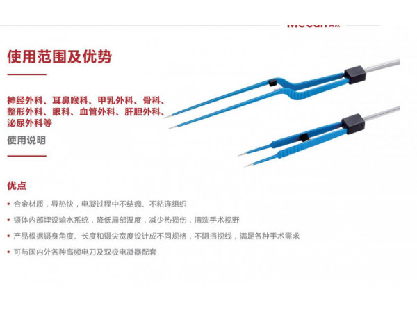 產(chǎn)品說(shuō)明: 【武漢麥朗醫(yī)療科技有限公司咨詢電話】雙極消融電極|不粘雙極電凝鑷|電凝鑷價(jià)格|一次性電凝鑷廠家。雙極電凝鑷與高頻手術(shù)設(shè)
