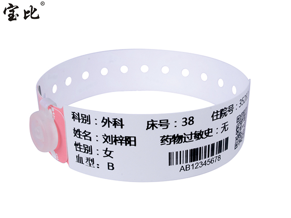 產(chǎn)品說明:1.實用的防偽封口設(shè)計,一次性使用,保證病人識別的唯一性;2.防水防酒精,避免因汗?jié)n和濕水等導(dǎo)致文體模糊;3.采用特殊環(huán)保材料