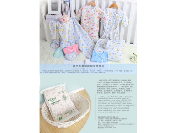 產(chǎn)品說明:產(chǎn)房新生兒無菌衣物推廣的必要性。1、衛(wèi)生部銘文,產(chǎn)房和新生兒科室是醫(yī)院院感控制的重點(diǎn)區(qū)域.新生兒免疫力低,家屬自備不潔凈物