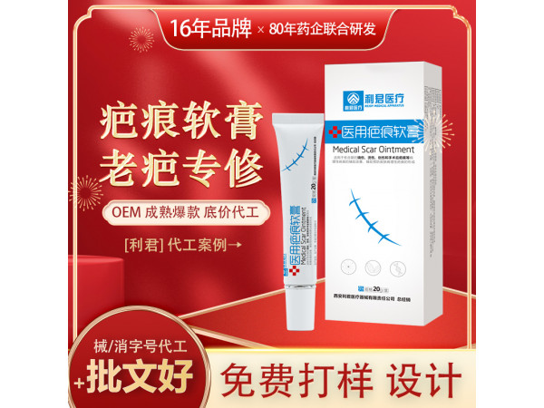 產品說明:由硅酮,冰片,硬脂酸,甘油,軟膏劑基質,純化水混合而成。20g/盒適用于愈合期的燒傷,燙傷,割傷和手術后疤痕等病理性疤痕的輔