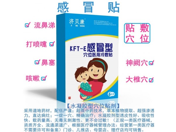 產(chǎn)品說(shuō)明:濟(jì)貝康感冒貼感冒貼:流鼻涕、打噴嚏、鼻塞、咳嗽。貼敷神闕穴(肚臍),大椎穴。一天一次,8-12小時(shí)更換一次最佳。水凝膠穴位貼劑