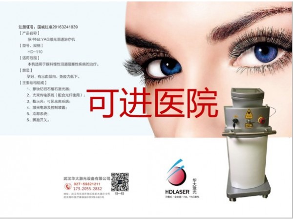產(chǎn)品說(shuō)明:【產(chǎn)品名稱】脈沖Nd:YAG激光淚道治療機(jī)【型號(hào)、規(guī)格】HD-110【適用范圍】本機(jī)適用于眼科慢性淚道阻塞性疾病?!窘伞吭袐D、有出