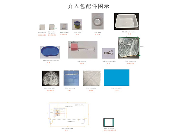 產(chǎn)品說明:一次性使用無菌介入手術(shù)包由基本配置:包布、中單、治療巾、自粘巾、洞巾、孔巾、器械盤套;選用配置:一次性使用手術(shù)衣、一次性