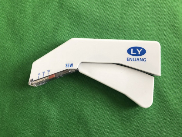 產(chǎn)品說明:一次性使用皮膚縫合器由固定手柄、活動(dòng)手柄、吻合釘組成;選配拆釘器 ELPFQ—(A/B)。固定手柄、活動(dòng)手柄由ABS 制成,吻合釘由 00