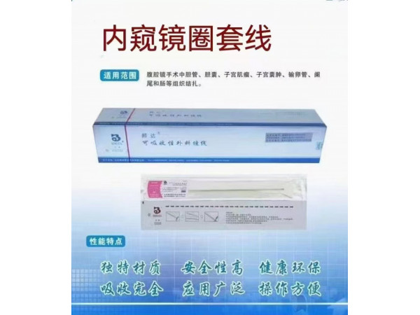 產(chǎn)品說(shuō)明:內(nèi)窺鏡圈套線內(nèi)窺鏡圈套線也叫圈套器,是闌尾炎、腸炎專用線,免打結(jié),小創(chuàng)傷,使用簡(jiǎn)單方便。邦達(dá)牌;可吸收性外科縫線(內(nèi)窺鏡
