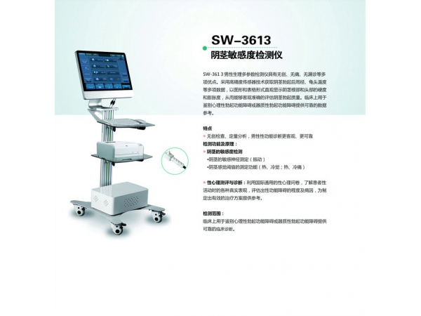 產(chǎn)品說明:MAN+SW-3603男性功能檢測儀儀器簡介◎ 造型新穎,搭配高性能一體機(jī),性能優(yōu)越,安全性高,人性化設(shè)計(jì),方便醫(yī)生臨床操作◎ 血流
