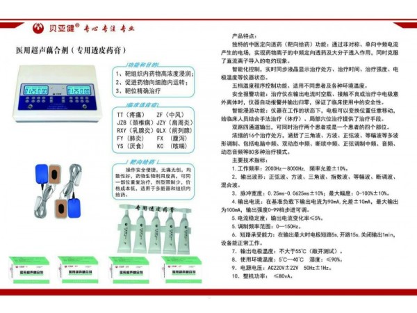 產(chǎn)品說(shuō)明:產(chǎn)品簡(jiǎn)介:百草嶺牌“智能數(shù)碼多功能治療儀”(原名:多功能經(jīng)皮給藥治療儀)是根據(jù)中國(guó)傳統(tǒng)中醫(yī)理論、結(jié)合人體經(jīng)絡(luò)學(xué)、生物物理