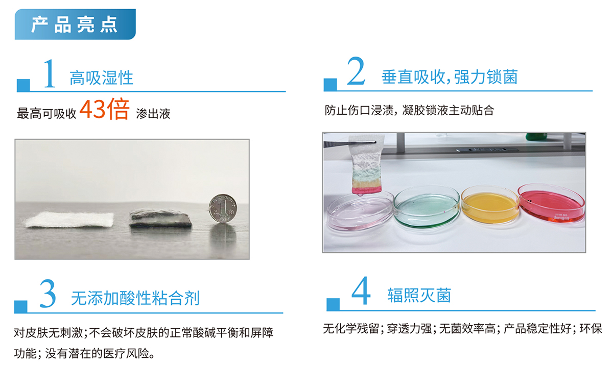 可吸收相當(dāng)于自身重量的39倍液體,減少換藥。