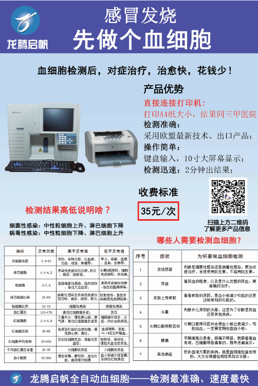 龍騰啟帆全自動血細胞分析儀 ¥36000元產(chǎn)品說明: