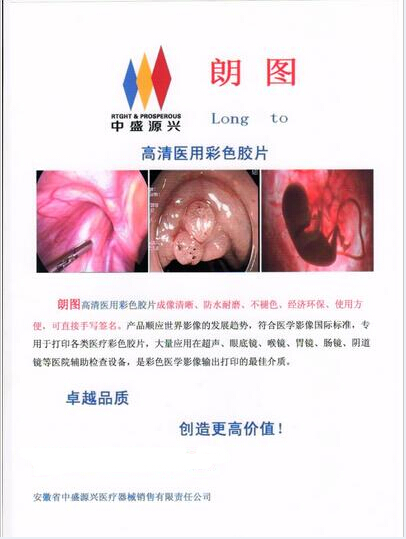 ?朗圖高清醫(yī)用彩色膠片成像清晰、防水耐磨、不褪色、經(jīng)濟環(huán)保、使用方便,可直接手寫簽名。產(chǎn)品順應世界影像的發(fā)展趨勢,符合醫(yī)學影像國際標準,專用于打印各類醫(yī)療彩色膠片,