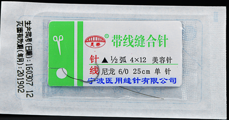 ▲美容縫合線:尼龍線 線長(zhǎng)35cm 配的是單角針雙角針用于整形和美容皮膚縫合