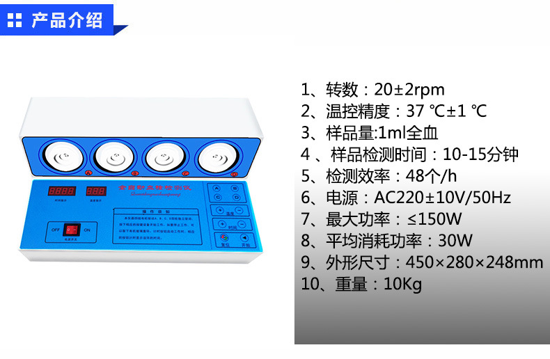 ?二、最新款血栓檢測儀的參數(shù): ①轉(zhuǎn)速: 7±0.5rpm ②溫控精度: 37℃±0.5℃ ③樣品量: 1ml全血 ④樣品檢測時(shí)間:10分鐘 ⑤電源: ac220±10v/50hz ⑥最大功率: ≤500w ⑦平均消耗功率:50w ⑧外形尺寸: 440×280×260mm ⑨重量:12kg?