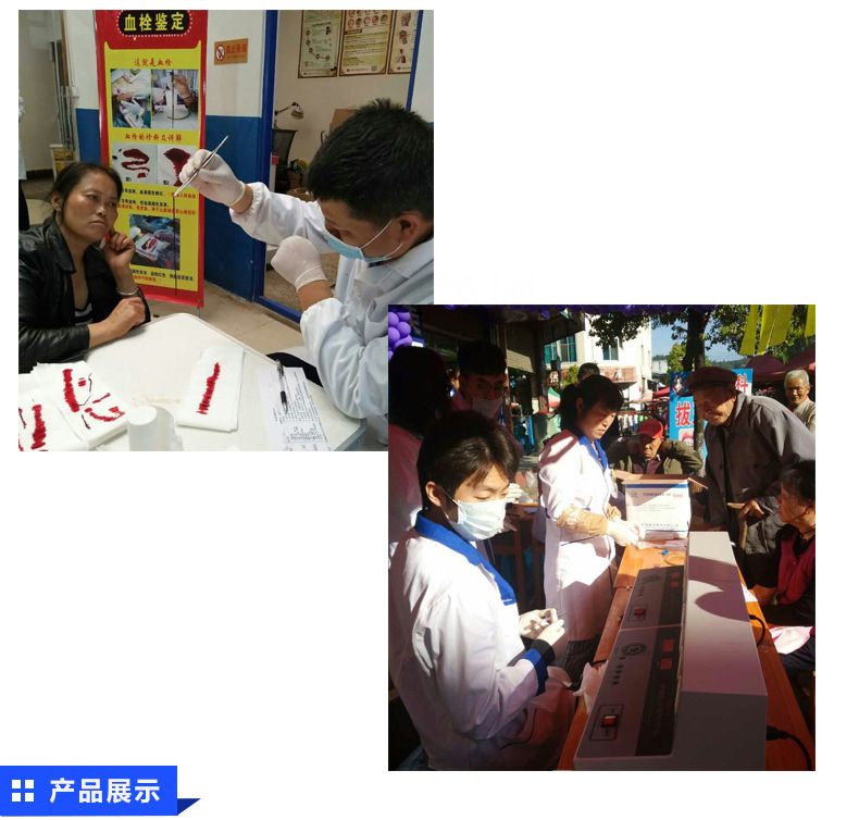 ?六、最新款血栓檢測儀的使用方法: 1.抽靜脈血1.5ml,注入人造血管里里,人造血管兩接頭插緊,放進(jìn)儀器里,啟動(dòng)開關(guān),等十分鐘報(bào)警聲響后取出. 2.檢查完后,把人造血管里的血均勻的倒在濾紙上。 3.此時(shí)可以在濾紙看到象蚯蚓一樣的血栓了??囱ǖ拈L度、血栓的干重和濕重從而判斷出疾病的輕重。從而判斷出疾病的輕重。