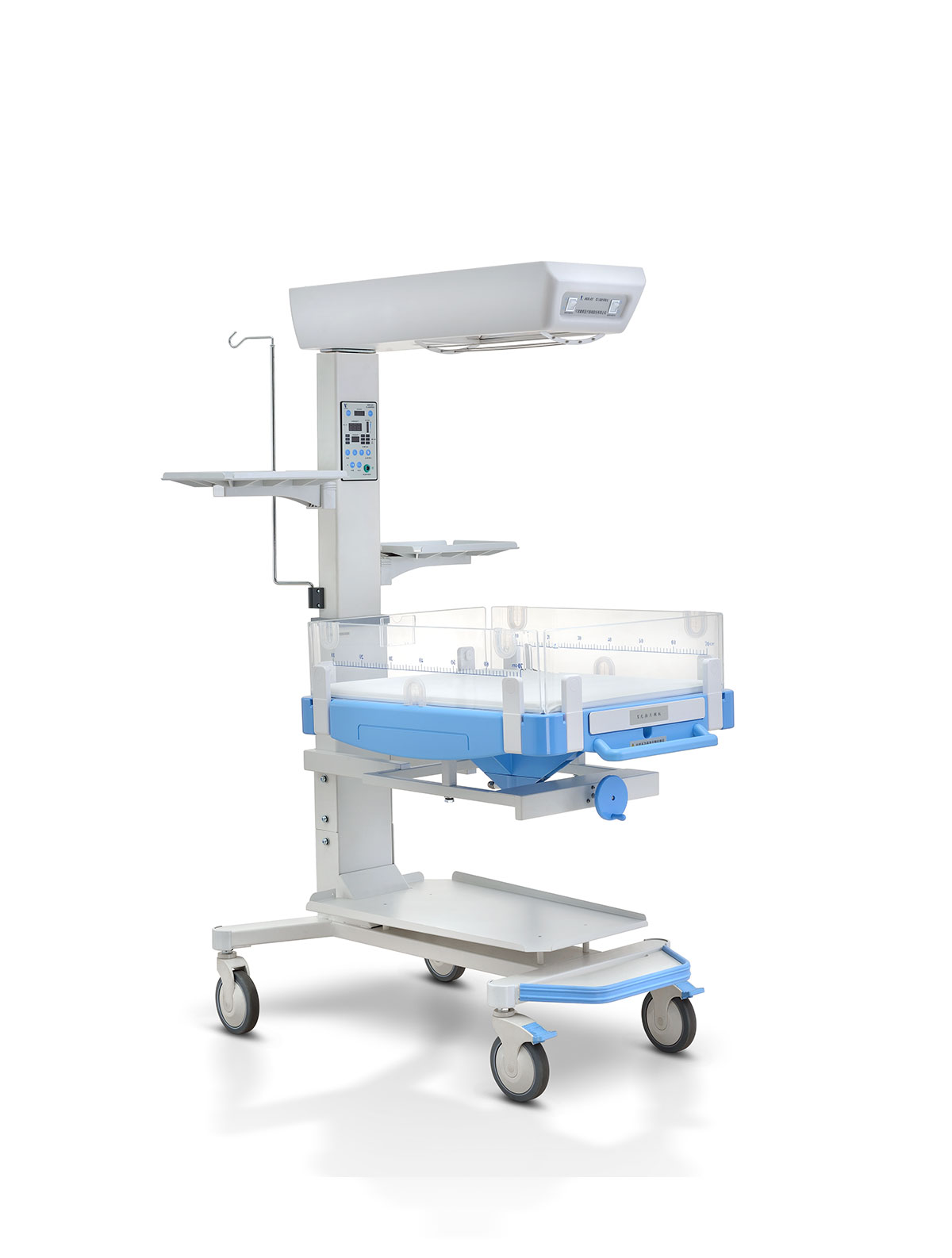 輻射箱,控制儀,皮膚溫度傳感器,嬰兒床,托盤,輸液架,機(jī)架。