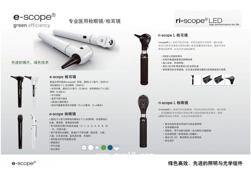 德國里斯特(Riester?)為五官科檢查提供了一流的便攜式檢查儀器。醫(yī)生和醫(yī)學(xué)院的學(xué)生都可使用e-scope檢耳鏡。輕巧和便攜的設(shè)計使它們在巡查、室內(nèi)檢查和日常使用中都是很方便的,是物超所值的。