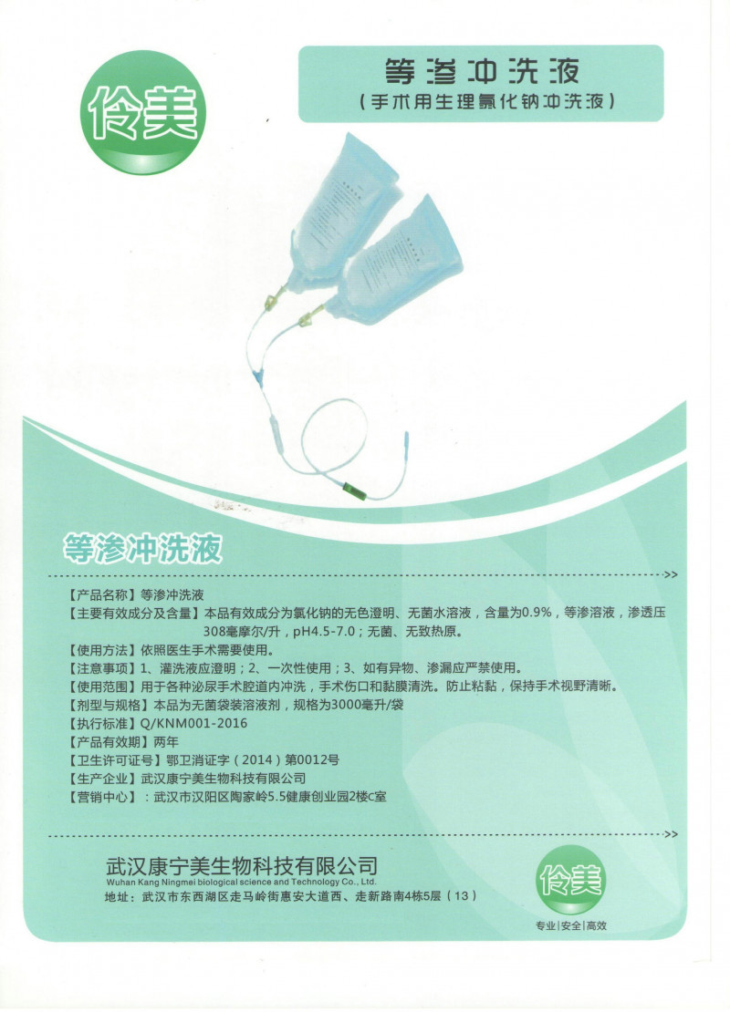 8.用法用量: 臨床手術(shù)外用沖洗,用于手術(shù)中手術(shù)后沖洗;一臺手術(shù)用量為8-16袋不等?