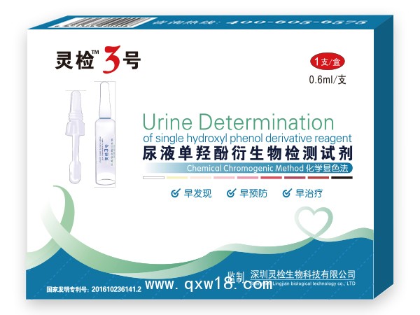 靈檢3號癌癥尿液檢測試劑,只需3分鐘,3毫升尿液,給身體做個(gè)抗癌檢查,通過尿液就能檢測出是否有癌癥隱患。癌癥尿液檢測試劑,一種用于早期發(fā)現(xiàn)腫瘤的癌癥尿液檢測試劑,歷經(jīng)十幾年時(shí)間于2005年研發(fā)成功,并獲得國家食品藥品監(jiān)督管理局批準(zhǔn)。產(chǎn)品名:尿液單羥酚衍生物檢測試劑,早期發(fā)現(xiàn),早篩查,是治療腫瘤的關(guān)鍵。腫瘤的發(fā)展分為5個(gè)階段:良性、腫瘤細(xì)胞啟動(dòng)期、腫瘤早期、腫瘤中期、晚期。