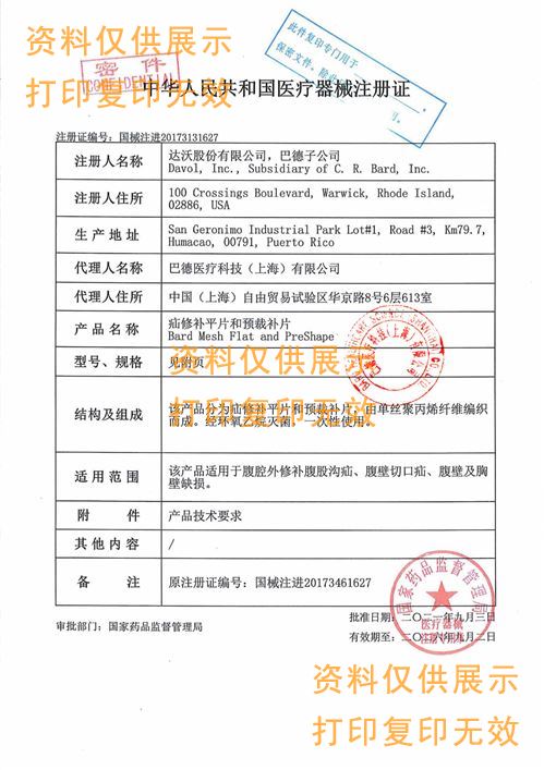 美國巴德BARD疝修補平片和預裁補片0113710產品說明: