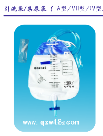 ???? I型(普通引流袋)由排液開關(guān) [十字閥/拉拔閥/單手夾/旋轉(zhuǎn)閥/雙翼閥(B型)/上控閥(C 型)]、排液管(選配件)、袋體、掛繩(選配件)、懸吊裝置(選配件)、上接導(dǎo)管(選配件)、引入管(選配件)、止流夾(選配件)、接頭、接頭護(hù)帽組成。II型(防逆流引流袋)由排液開關(guān)[十字閥/拉拔閥/單手夾/旋轉(zhuǎn)閥/雙翼閥(B型)/上控閥(C 型)]、排液管、袋體、防逆流膜片、掛繩、上接導(dǎo)管(選配件)、引入管、懸吊裝置(掛環(huán)/掛架)、止流夾(單手夾/片夾)、床單夾(選配件)、接頭(或帶采樣口接頭)、接頭護(hù)帽、轉(zhuǎn)換接頭(選配件)、排液閥插接管(C型)、排液接頭(選配件/C型)組成。III型(精密計(jì)量引流袋)由計(jì)量盒與貯液袋連接組成,其中包括計(jì)量盒排液開關(guān)、計(jì)量盒排出管、貯液袋、計(jì)量盒、導(dǎo)流膜、止回閥、懸吊裝置、通氣口、接頭(或帶采樣口接頭)、接頭護(hù)帽、引入管 、止流夾(單手夾/片夾)、床單夾、貯液袋排液開關(guān)[十字閥/拉拔閥/單手夾/旋轉(zhuǎn)閥/雙翼閥(B型)/上控閥(C 型)]、貯液袋排出管、轉(zhuǎn)換接頭(選配件)、排液閥插接管(C型)、排液接頭(選配件/C型)。IV-A型(腿袋)由排液開關(guān)(十字閥/拉拔閥/單手夾/旋轉(zhuǎn)閥)、排液管、袋體、防逆流膜片、綁帶、上接導(dǎo)管(選配件)、引入管(選配件)、接頭(或帶采樣口接頭)、接頭護(hù)帽組成。V型(負(fù)壓引流袋)由排液開關(guān)[十字閥/拉拔閥/單手夾/旋轉(zhuǎn)閥/雙翼閥(B型)/上控閥(C 型) ]、排液管、袋體、防逆流膜片、掛繩、上接導(dǎo)管(選配件)、引入管、懸吊裝置(掛環(huán)/掛架)、止流夾(單手夾/片夾)、床單夾(選配件)、接頭(或帶采樣口接頭)、接頭護(hù)帽、轉(zhuǎn)換接頭(選配件)、負(fù)壓裝置、排液閥插接管(C型)、排液接頭(選配件/C型)組成。VI型(尿套型引流袋)由排液開關(guān)[十字閥/拉拔閥/單手夾/旋轉(zhuǎn)閥/雙翼閥(B型)/上控閥(C 型)]、排液管、袋體、防逆流膜片(選配件)、掛繩(選配件)、上接導(dǎo)管(選配件)、引入管、懸吊裝置(掛環(huán)/掛架)、止流夾(單手夾/片夾)、床單夾(選配件)、尿套、排液閥插接管(C型)、排液接頭(選配件/C型),組成。VII型(側(cè)排式引流流)由排液開關(guān)(單手夾/旋轉(zhuǎn)閥)、排液管、袋體、防逆流膜片(選配件)、掛繩(選配件)、上接導(dǎo)管(選配件)、引入管(選配件)、懸吊裝置(選配件)、止流夾(選配件)、床單夾(選配件)、接頭(選配件)、接頭護(hù)帽(選配件)、轉(zhuǎn)換接頭(選配件)、排液接頭組成,VIII(嬰兒引流袋)由袋體、熱熔壓敏膠、海綿(選配件)、隔離紙、尿液收集孔組成。