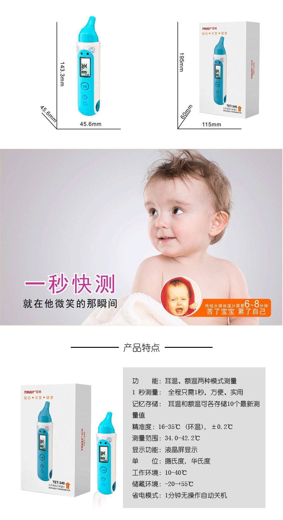 信利紅外線電子體溫計(jì)TET-340產(chǎn)品說明:
