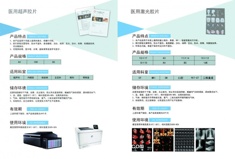 適用于醫(yī)院CR、DR、MRI、CT、DSA等醫(yī)用成像設備的成像及A超、B超、C超、M超彩色照相膠片、圖文報告、波拉片及病理科成像設備的圖像和診斷報告的打印。??