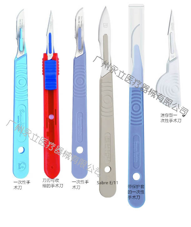 Sabre系列刀片:3種一次性手術(shù)刀可選型號:E/11,D/15,B/23。獨(dú)立包裝。