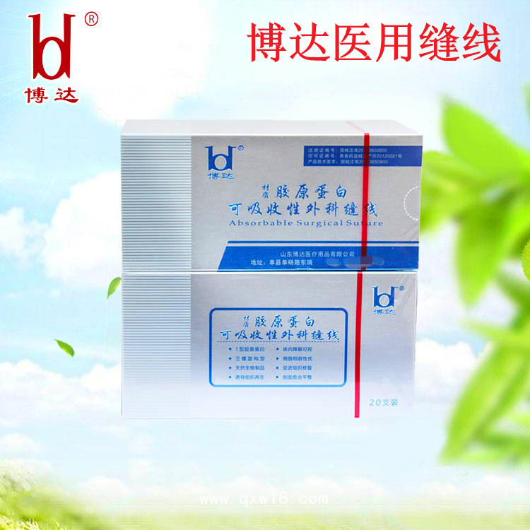 1、山東博達(dá)可吸收膠原蛋白外科縫合線 帶針手術(shù)縫合線