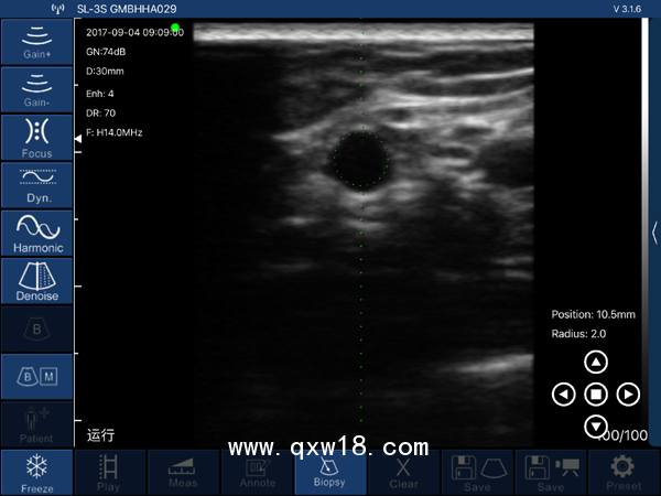 -穿刺輔助功能:平面內(nèi)穿刺引導(dǎo)線功能,平面外穿刺引導(dǎo)與血管自動(dòng)測(cè)量功能,針尖顯影增強(qiáng)功能