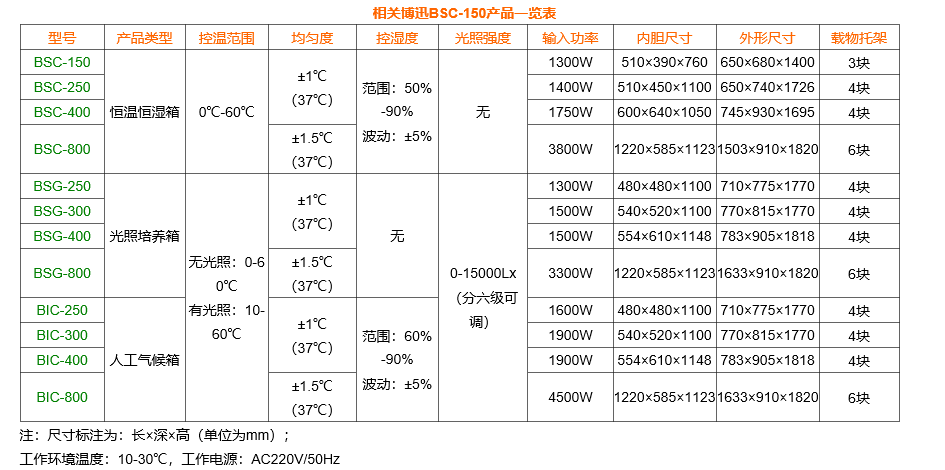 BSC-150、250、400、800恒溫恒濕箱產品說明: