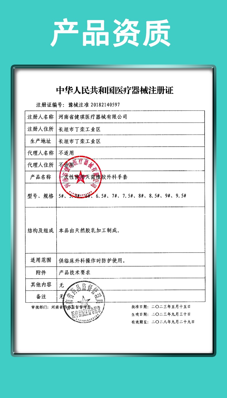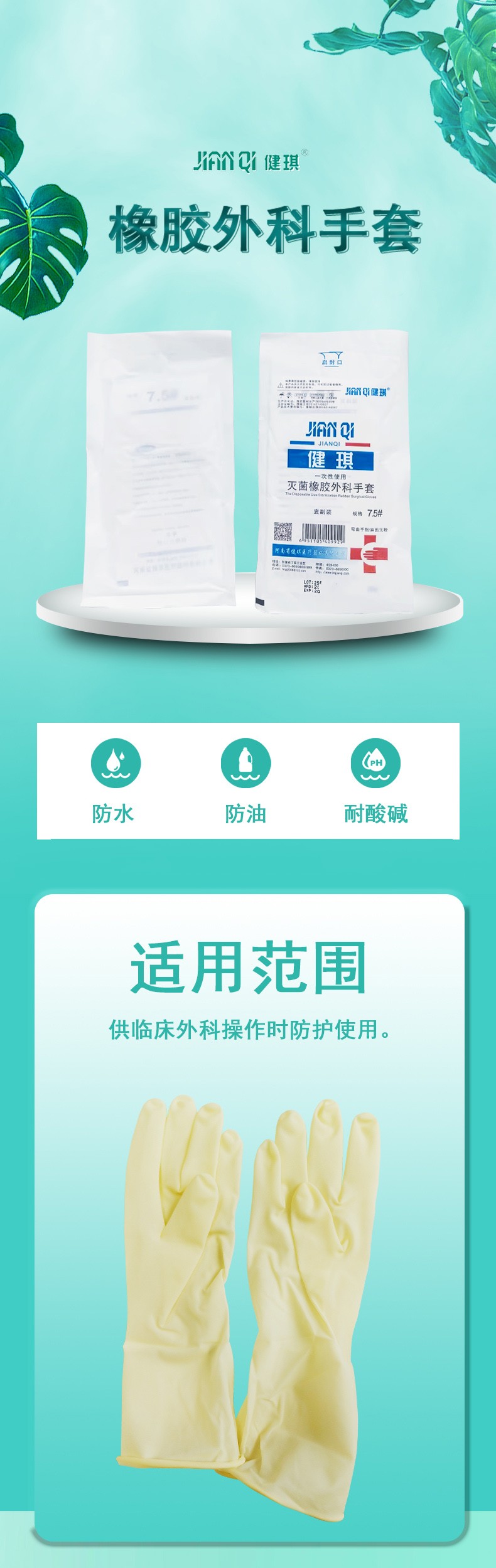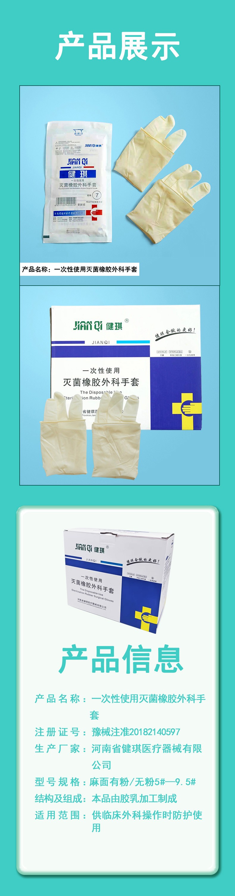 一次性使用滅菌橡膠外科手套河南健琪廠家招商產(chǎn)品說明: