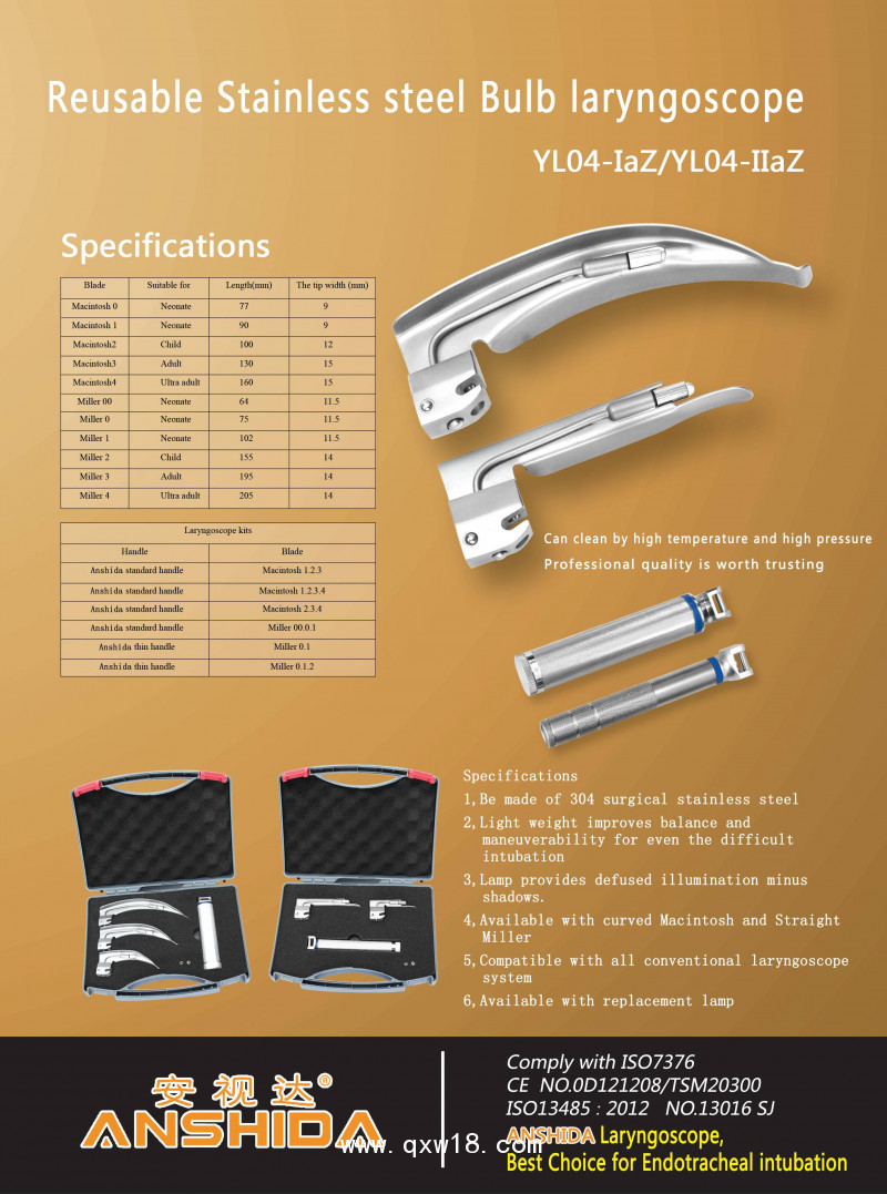 麻醉咽喉鏡YL04-IaZ(全鋼燈泡喉鏡)產品說明: