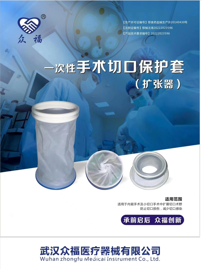 適用范圍/預(yù)期用途:適用于內(nèi)窺鏡手術(shù)及小切口手術(shù),擴(kuò)展切口術(shù)野,保護(hù)切口免受損傷,減少切口感染。