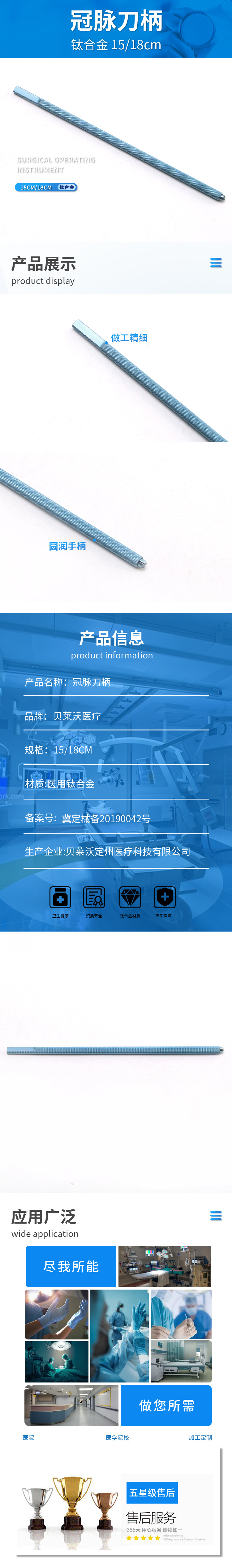 心胸外科冠脈刀柄 醫(yī)用鈦合金冠脈刀柄醫(yī)用刀柄貝萊沃優(yōu)質(zhì)刀柄產(chǎn)品說明: