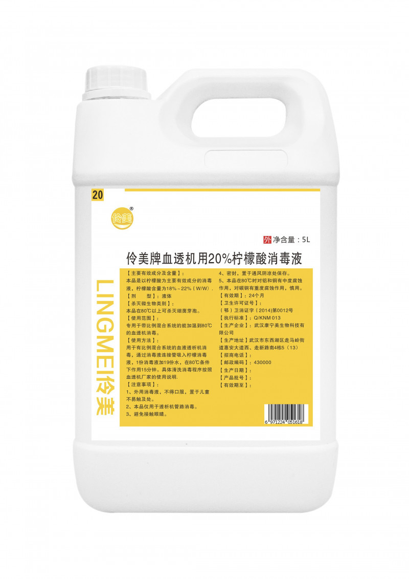 伶美牌血透機用20%檸檬酸消毒液產品說明: