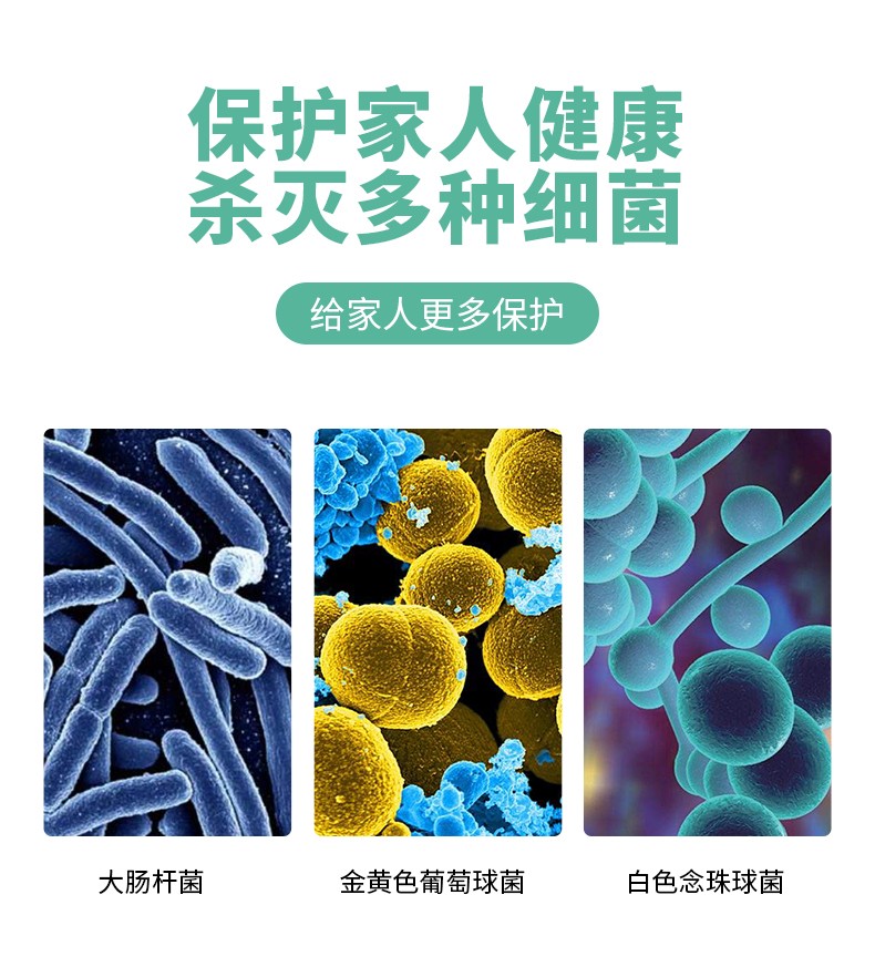 殺滅微生物類別:對(duì)大腸桿菌、金黃色葡萄物類別球菌、白色念珠菌有消殺