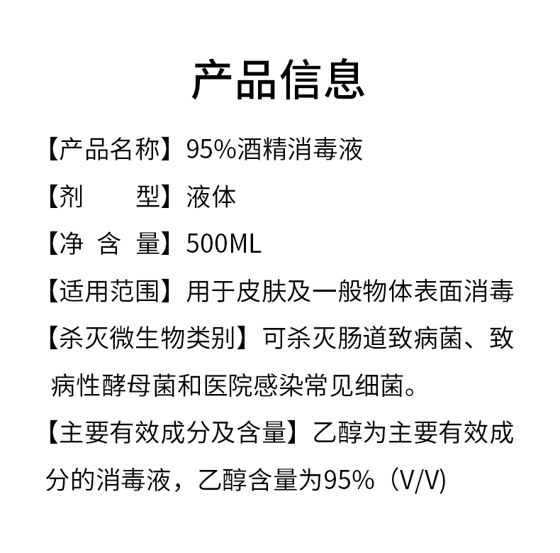 95%酒精消毒液 500ML家用便攜學(xué)校超市工廠安檢產(chǎn)品說明: